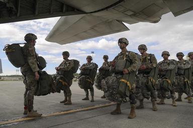 Keywords: arctic aurora 2016 arcticaurora2016 airborne 4th infantry brigade combat team (airborne) 4thinfantrybrigadecombatteamairborne 25th infantry division 25thinfantrydivision kc-130j super hercules kc130jsuperhercules japanese ground self defense force japanesegroundselfdefenseforce joint base elmendorf-richardson jointbaseelmendorfrichardson alaska usa us people outdoor Paratroopers assigned to the 3rd Battalion, 509th Parachute Infantry Regiment, wait to board a KC-130J Super Hercules while conducting airborne operations during Arctic Aurora 2016 at Joint Base Elmendorf-Richardson, Alaska, June 2, 2016. Arctic Aurora 2016 is a yearly bilateral training exercise, involving elements of the 4th Infantry Brigade Combat Team (Airborne), 25th Infantry Division and the Japanese Ground Self Defense Force, that promotes interoperability by conducting combined small unit airborne proficiency operations and basic small arms marksmanship. (U.S. Air Force photo/Alejandro Pena) Paratroopers assigned to the 3rd Battalion, 509th Parachute Infantry Regiment, wait to board a KC-130J Super Hercules while conducting airborne operations during Arctic Aurora 2016 at Joint Base Elmendorf-Richardson, Alaska, June 2, 2016. Arctic Aurora 2016 is a yearly bilateral training exercise, involving elements of the 4th Infantry Brigade Combat Team (Airborne), 25th Infantry Division and the Japanese Ground Self Defense Force, that promotes interoperability by conducting combined small unit airborne proficiency operations and basic small arms marksmanship. (U.S. Air Force photo/Alejandro Pena)