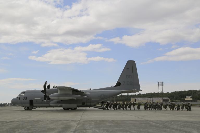 Keywords: arctic aurora 2016 arcticaurora2016 airborne 4th infantry brigade combat team (airborne) 4thinfantrybrigadecombatteamairborne 25th infantry division 25thinfantrydivision kc-130j super hercules kc130jsuperhercules japanese ground self defense force japanesegroundselfdefenseforce joint base elmendorf-richardson jointbaseelmendorfrichardson alaska usa us outdoor Paratroopers assigned to the 3rd Battalion, 509th Parachute Infantry Regiment, board a KC-130J Super Hercules while conducting airborne operations during Arctic Aurora 2016 at Joint Base Elmendorf-Richardson, Alaska, June 2, 2016. Arctic Aurora 2016 is a yearly bilateral training exercise, involving elements of the 4th Infantry Brigade Combat Team (Airborne), 25th Infantry Division and the Japanese Ground Self Defense Force, that promotes interoperability by conducting combined small unit airborne proficiency operations and basic small arms marksmanship. (U.S. Air Force photo/Alejandro Pena) Paratroopers assigned to the 3rd Battalion, 509th Parachute Infantry Regiment, board a KC-130J Super Hercules while conducting airborne operations during Arctic Aurora 2016 at Joint Base Elmendorf-Richardson, Alaska, June 2, 2016. Arctic Aurora 2016 is a yearly bilateral training exercise, involving elements of the 4th Infantry Brigade Combat Team (Airborne), 25th Infantry Division and the Japanese Ground Self Defense Force, that promotes interoperability by conducting combined small unit airborne proficiency operations and basic small arms marksmanship. (U.S. Air Force photo/Alejandro Pena) |