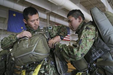 Keywords: arctic aurora 2016 arcticaurora2016 airborne 4th infantry brigade combat team (airborne) 4thinfantrybrigadecombatteamairborne 25th infantry division 25thinfantrydivision kc-130j super hercules kc130jsuperhercules japanese ground self defense force japanesegroundselfdefenseforce joint base elmendorf-richardson jointbaseelmendorfrichardson alaska usa us people Japanese Ground Self Defense Force paratroopers don their jump gear before conducting airborne operations during Arctic Aurora 2016 at Joint Base Elmendorf-Richardson, Alaska, June 2, 2016. Arctic Aurora 2016 is a yearly bilateral training exercise, involving elements of the 4th Infantry Brigade Combat Team (Airborne), 25th Infantry Division and the Japanese Ground Self Defense Force, that promotes interoperability by conducting combined small unit airborne proficiency operations and basic small arms marksmanship. (U.S. Air Force photo/Alejandro Pena) Japanese Ground Self Defense Force paratroopers don their jump gear before conducting airborne operations during Arctic Aurora 2016 at Joint Base Elmendorf-Richardson, Alaska, June 2, 2016. Arctic Aurora 2016 is a yearly bilateral training exercise, involving elements of the 4th Infantry Brigade Combat Team (Airborne), 25th Infantry Division and the Japanese Ground Self Defense Force, that promotes interoperability by conducting combined small unit airborne proficiency operations and basic small arms marksmanship. (U.S. Air Force photo/Alejandro Pena)