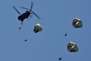 | Keywords: soldiers; army; u.s. army; u.s. army alaska; usarpac; u.s. army soldiersarmyusarmyusarmyalaskausarpacusarmy joint base elmendorf-richardson jointbaseelmendorfrichardson alaska usa soldiers; army; u.s. army; u.s. army alaska; usarpac; u.s. army pacific; airborne; paratroopers; jgsdf; japanese ground self-defense force; arctic aurora; pacific partnership; pacom; pacific command soldiersarmyusarmyusarmyalaskausarpacusarmypacificairborneparatroopersjgsdfjapanesegroundselfdefenseforcearcticaurorapacificpartnershippacompacificcommand outdoor minimalism Paratroopers assigned to the 3rd Battalion, 509th Parachute Infantry Regiment, 4th Infantry Brigade Combat Team (Airborne), 25th Infantry Division, U.S. Army Alaska, and the Japan Ground Self-Defense Force execute an airborne proficiency operation at Joint Base Elmendorf-Richardson, Alaska, June 9, 2016, during Exercise Arctic Aurora. Arctic Aurora is a yearly bilateral training exercise involving elements of the Spartan Brigade and the Japanese Ground Self-Defense Force, which focuses on strengthening ties between the two by executing combined small unit airborne proficiency operations and basic small arms marksmanship. (U.S. Air Force photo/Justin Connaher) Paratroopers assigned to the 3rd Battalion, 509th Parachute Infantry Regiment, 4th Infantry Brigade Combat Team (Airborne), 25th Infantry Division, U.S. Army Alaska, and the Japan Ground Self-Defense Force execute an airborne proficiency operation at Joint Base Elmendorf-Richardson, Alaska, June 9, 2016, during Exercise Arctic Aurora. Arctic Aurora is a yearly bilateral training exercise involving elements of the Spartan Brigade and the Japanese Ground Self-Defense Force, which focuses on strengthening ties between the two by executing combined small unit airborne proficiency operations and basic small arms marksmanship. (U.S. Air Force photo/Justin Connaher) |