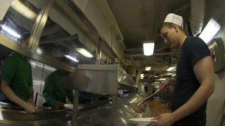 MAKE A MEME View Large Image ...June 15, 2016)- Culinary Specialist Seaman Jefferey Hohmann attends Sailors in the aft mess deck of the aircraft carrier USS Dwight D. Eisenhower (CVN 69) (Ike). Ike, the flagship of the Eisenhower Carrier Strike Group, is conducting naval ...