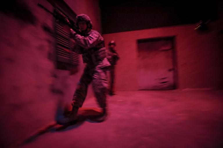Keywords: usaf u.s. air force usairforce air national guard airnationalguard new jersey newjersey 177th security forces squadron 177thsecurityforcessquadron m4 training joint base mcguire-dix-lakehurst jointbasemcguiredixlakehurst jt2dc n.j. nj usa public domain publicdomain free U.S. Air Force Airmen from the New Jersey Air National Guard's 177th Security Forces Squadron maneuver through an indoor Military Operations in Urban Terrain (MOUT) site during training at the New Jersey National Guard's Joint Training & Training Development Center (JT2DC), Joint Base McGuire-Dix-Lakehurst, N.J., June 16, 2016. The 177th Security Forces Squadron was utilizing the ability for the JT2DC's training areas to simulate low-light conditions in an urban environment. The red and blue lighting simulates a moonlit night as seen through night vision devices. (U.S. Air National Guard photo by Tech. Sgt. Matt Hecht/Released) U.S. Air Force Airmen from the New Jersey Air National Guard's 177th Security Forces Squadron maneuver through an indoor Military Operations in Urban Terrain (MOUT) site during training at the New Jersey National Guard's Joint Training & Training Development Center (JT2DC), Joint Base McGuire-Dix-Lakehurst, N.J., June 16, 2016. The 177th Security Forces Squadron was utilizing the ability for the JT2DC's training areas to simulate low-light conditions in an urban environment. The red and blue lighting simulates a moonlit night as seen through night vision devices. (U.S. Air National Guard photo by Tech. Sgt. Matt Hecht/Released) |