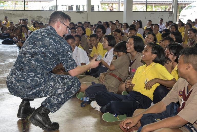 | Keywords: 160620-N-OU129-027 160620-N-OU129-144.jpg en 160620-N-OU129-144 SATTAHIP Thailand June 20 2016 Musician 3rd Class Holden Moyer from the 7th Fleet Rock Band Orient Express sings with students during a joint rock concert with the Royal Thai Marine Corps Band at Singsamut School during Cooperation Afloat Readiness and Training CARAT Thailand 2016 CARAT is a series of annual maritime exercises between the U S Navy U S Marine Corps and the armed forces of nine partner nations to include Bangladesh Brunei Cambodia Indonesia Malaysia the Philippines Singapore Thailand and Timor-Leste U S Navy photo by Mass Communication Specialist 2nd Class Joshua Fulton/Released <br>Unit Commander Logistics Group Western Pacific 2016-06-20 Petty Officer 2nd Class Joshua Fulton https //www dvidshub net/image/2673710/160620-n-ou129-027 160620-N-OU129-144 2016-06-20 06 17 TH PD-USGov-Military-Navy Sattahip The Orient Express U S Navy 7th Fleet Band Images from DoD uploaded by Fæ |