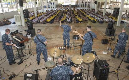 | Keywords: 160620-N-OU129-135 160620-N-OU129-135.jpg en 160620-N-OU129-135 SATTAHIP Thailand June 20 2016 U S Navy sailors from the 7th Fleet Rock Band Orient Express perform a joint rock concert with the Royal Thai Marine Corps Band at Singsamut School during Cooperation Afloat Readiness and Training CARAT Thailand 2016 CARAT is a series of annual maritime exercises between the U S Navy U S Marine Corps and the armed forces of nine partner nations to include Bangladesh Brunei Cambodia Indonesia Malaysia the Philippines Singapore Thailand and Timor-Leste U S Navy photo by Mass Communication Specialist 2nd Class Joshua Fulton/Released <br>Unit Commander Logistics Group Western Pacific 2016-06-20 Petty Officer 2nd Class Joshua Fulton https //www dvidshub net/image/2673709/160620-n-ou129-135 160620-N-OU129-135 2016-06-20 06 17 TH PD-USGov-Military-Navy Sattahip The Orient Express U S Navy 7th Fleet Band Images from DoD uploaded by Fæ |
