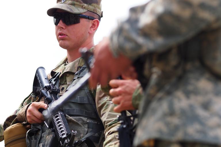| Keywords: soldiers; army; u.s. army; u.s. army alaska; usarpac; u.s. army soldiersarmyusarmyusarmyalaskausarpacusarmy joint base elmendorf-richardson jointbaseelmendorfrichardson alaska usa soldiers; army; u.s. army; u.s. army alaska; usarpac; u.s. army pacific; ready warrior; competition; small unit; leadership; testing; training soldiersarmyusarmyusarmyalaskausarpacusarmypacificreadywarriorcompetitionsmallunitleadershiptestingtraining Spc. Steven Wolfe, a native of Tacoma, Wash., assigned to the 539th Composite Truck Company (Light), 17th Combat Sustainment Support Battalion, U.S. Army Alaska, listens to a safety briefing before a Situation Exercise Training lane during the Ready Warrior Competition at Camp Madbull on Joint Base Elmendorf-Richardson, Alaska, Thursday, June 23, 2016. The three-day competition tested teams of Soldiers in physical fitness, small arms proficiency, land navigation, and small-unit tactics as well as other Soldier skills. (U.S. Air Force photo/Justin Connaher) Spc. Steven Wolfe, a native of Tacoma, Wash., assigned to the 539th Composite Truck Company (Light), 17th Combat Sustainment Support Battalion, U.S. Army Alaska, listens to a safety briefing before a Situation Exercise Training lane during the Ready Warrior Competition at Camp Madbull on Joint Base Elmendorf-Richardson, Alaska, Thursday, June 23, 2016. The three-day competition tested teams of Soldiers in physical fitness, small arms proficiency, land navigation, and small-unit tactics as well as other Soldier skills. (U.S. Air Force photo/Justin Connaher) |
