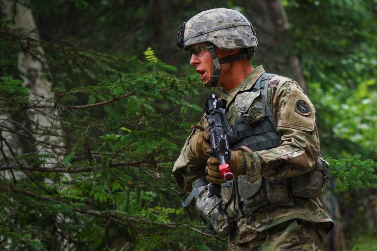 | Keywords: soldiers; army; u.s. army; u.s. army alaska; usarpac; u.s. army soldiersarmyusarmyusarmyalaskausarpacusarmy joint base elmendorf-richardson jointbaseelmendorfrichardson alaska usa soldiers; army; u.s. army; u.s. army alaska; usarpac; u.s. army pacific; ready warrior; competition; small unit; leadership; testing; training soldiersarmyusarmyusarmyalaskausarpacusarmypacificreadywarriorcompetitionsmallunitleadershiptestingtraining outdoor Spc. Colton Gobel, a native of Touchet, Wash., assigned to the 539th Composite Truck Company (Light), 17th Combat Sustainment Support Battalion, U.S. Army Alaska, yells a warning to his team on a Situation Exercise Training lane during the Ready Warrior Competition at Camp Madbull on Joint Base Elmendorf-Richardson, Alaska, Thursday, June 23, 2016. The three-day competition tested teams of Soldiers in physical fitness, small arms proficiency, land navigation, and small-unit tactics as well as other Soldier skills. (U.S. Air Force photo/Justin Connaher) Spc. Colton Gobel, a native of Touchet, Wash., assigned to the 539th Composite Truck Company (Light), 17th Combat Sustainment Support Battalion, U.S. Army Alaska, yells a warning to his team on a Situation Exercise Training lane during the Ready Warrior Competition at Camp Madbull on Joint Base Elmendorf-Richardson, Alaska, Thursday, June 23, 2016. The three-day competition tested teams of Soldiers in physical fitness, small arms proficiency, land navigation, and small-unit tactics as well as other Soldier skills. (U.S. Air Force photo/Justin Connaher) |