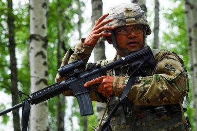 | Keywords: soldiers; army; u.s. army; u.s. army alaska; usarpac; u.s. army soldiersarmyusarmyusarmyalaskausarpacusarmy joint base elmendorf-richardson jointbaseelmendorfrichardson alaska usa soldiers; army; u.s. army; u.s. army alaska; usarpac; u.s. army pacific; ready warrior; competition; small unit; leadership; testing; training soldiersarmyusarmyusarmyalaskausarpacusarmypacificreadywarriorcompetitionsmallunitleadershiptestingtraining people outdoor Army Sgt. Norbert Iriarte, a native of Mangilao, Guam, assigned to the 17th Combat Sustainment Support Battalion, U.S. Army Alaska, gives a hand signal to his team on a Situation Exercise Training lane during the Ready Warrior Competition at Camp Madbull on Joint Base Elmendorf-Richardson, Alaska, Thursday, June 23, 2016. The three-day competition tested teams of Soldiers in physical fitness, small arms proficiency, land navigation, and small-unit tactics as well as other Soldier skills. (U.S. Air Force photo/Justin Connaher) Army Sgt. Norbert Iriarte, a native of Mangilao, Guam, assigned to the 17th Combat Sustainment Support Battalion, U.S. Army Alaska, gives a hand signal to his team on a Situation Exercise Training lane during the Ready Warrior Competition at Camp Madbull on Joint Base Elmendorf-Richardson, Alaska, Thursday, June 23, 2016. The three-day competition tested teams of Soldiers in physical fitness, small arms proficiency, land navigation, and small-unit tactics as well as other Soldier skills. (U.S. Air Force photo/Justin Connaher) |