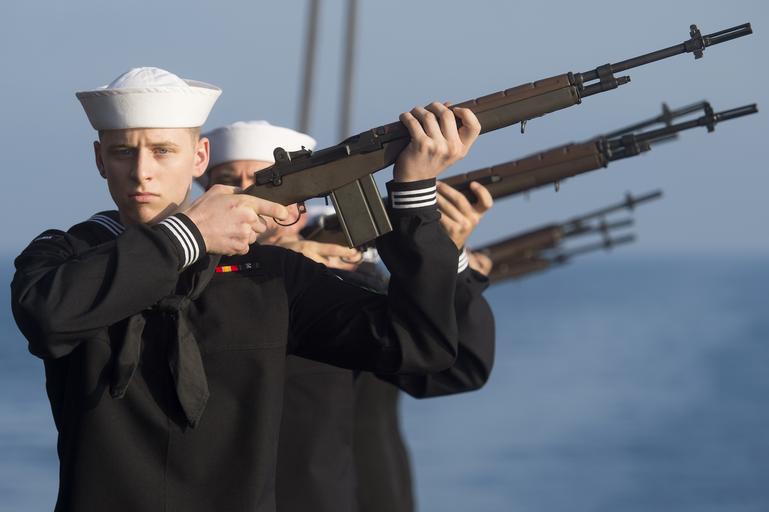 | Keywords: uss harry s. truman (cvn 75) ussharrystrumancvn75 burial at sea ceremony burialatseaceremony rifle. gun salute riflegunsalute mediterranean sea mediterraneansea usa 160627-N-ZG705-162 MEDITERRANEAN SEA (June 27, 2016) Sailors render a 21-gun salute during a burial at sea ceremony aboard aircraft carrier USS Harry S. Truman (CVN 75). Harry S. Truman Carrier Strike Group is deployed in support of maritime security operations and theater security cooperation efforts in the U.S. 6th Fleet area of operations. (U.S. Navy photo by Mass Communication Specialist 2nd Class Karl Anderson/Released) 160627-N-ZG705-162 MEDITERRANEAN SEA (June 27, 2016) Sailors render a 21-gun salute during a burial at sea ceremony aboard aircraft carrier USS Harry S. Truman (CVN 75). Harry S. Truman Carrier Strike Group is deployed in support of maritime security operations and theater security cooperation efforts in the U.S. 6th Fleet area of operations. (U.S. Navy photo by Mass Communication Specialist 2nd Class Karl Anderson/Released) |