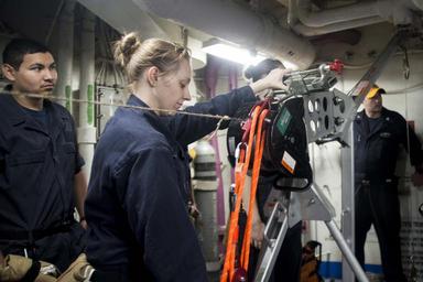| Keywords: cvn 69 cvn69 ike deployment csg 10 csg10 ofrp cvw 3 cvw3 160702-N-QN175-056 MEDITERRANEAN SEA (July 2, 2016) - Damage Controlman 2nd Class Jennifer Cole assembles a rescue davit system (RDS) in the aft mess decks of the aircraft carrier USS Dwight D. Eisenhower (CVN 69) (Ike). Ike is deployed in support of Operation Inherent Resolve, maritime security operations and theater security operation efforts in the U.S. 6th Fleet area of operations. (U.S. Navy photo by Mass Communication Specialist Seaman Dartez C. Williams/Released) 160702-N-QN175-056 MEDITERRANEAN SEA (July 2, 2016) - Damage Controlman 2nd Class Jennifer Cole assembles a rescue davit system (RDS) in the aft mess decks of the aircraft carrier USS Dwight D. Eisenhower (CVN 69) (Ike). Ike is deployed in support of Operation Inherent Resolve, maritime security operations and theater security operation efforts in the U.S. 6th Fleet area of operations. (U.S. Navy photo by Mass Communication Specialist Seaman Dartez C. Williams/Released) |