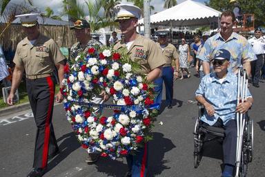 | Keywords: 160721-N-IY633-024 160721-N-IY633-024.jpg en 160721-N-IY633-024 HAGATNA Guam July 21 2016 Commanding General 3rd Marine Division Maj Gen Richard Simcock left along with retired and active duty Marines and Guam government officials carry a commemorative wreath to lay at a memorial honoring those lost during the Second Battle of Guam during the 72nd annual celebration of Guam Liberation Day Liberation Day commemorates the reclaiming of the island of Guam from Japanese control after World War II in 1944 participants in the celebration include Marines Airmen and Sailors from local bases as well as Marines and Sailors from 3rd Marine Division Color Guard and III Marine Expeditionary Force MEF band based out of Okinawa Japan U S Navy photo by Mass Communication Specialist 1st Class Amanda S Kitchner/Released Unit Navy Media Content Services DVIDS Tags Guam; Pacific; 3rd Marine Division; Liberation Day; DMA; Defense Media Activity; Marines; U S Marines; U S Navy; United States Navy; Naval History; NMCS; AFN Pacific; DVIDS Bulk Import; PO1 Amanda Kitchner; Chamorro Culture; Chamorro History; US Military History 2016-07-21 Petty Officer 1st Class Amanda Kitchner https //www dvidshub net/image/2768055/160721-n-iy633-024 160721-N-IY633-024 2016-08-04 00 48 HAGATNA GU PD-USGov-Military-Navy Photos by Amanda S Kitchner Images from DoD uploaded by Fæ |