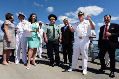 | Keywords: select odesa outdoor 160724-N-FP878-063 ODESSA, Ukraine (July 24, 2016) – Cmdr. Russell Caldwell, commanding officer of USS Ross (DDG 71) gives a tour of the ship to foreign dignitaries as part of Sea Breeze 2016 July 24, 2016. Sea Breeze is an air, land and maritime exercise designed to improve maritime safety, security and stability in the Black Sea. (U.S. Navy photo by Mass Communication Specialist 1st Class Theron J. Godbold/Released) 160724-N-FP878-063 ODESSA, Ukraine (July 24, 2016) – Cmdr. Russell Caldwell, commanding officer of USS Ross (DDG 71) gives a tour of the ship to foreign dignitaries as part of Sea Breeze 2016 July 24, 2016. Sea Breeze is an air, land and maritime exercise designed to improve maritime safety, security and stability in the Black Sea. (U.S. Navy photo by Mass Communication Specialist 1st Class Theron J. Godbold/Released) |