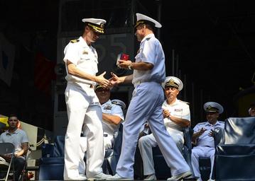 | Keywords: sea breeze 2016 seabreeze2016 closing ceremony closingceremony award presentation awardpresentation well deck welldeck amphibious dock landing ship uss whidbey island lsd 41 amphibiousdocklandingshipusswhidbeyislandlsd41 commanding officer commandingofficer ukraine navy cno ukrainenavycno odessa ukraine black sea blacksea 160730-N-TI017-066 ODESSA, Ukraine (July 30, 2016) Cmdr. Ethan Rule, left, commanding officer of amphibious dock landing ship USS Whidbey Island (LSD 41), accepts an award from Vice Adm. Ihor Voronchenko, acting commander of naval forces of Ukraine, in the well deck of Whidbey Island during the closing ceremony for Exercise Sea Breeze 2016, July 30. Whidbey Island is participating in Sea Breeze, an air, land and maritime exercise designed to improve maritime safety, security and stability in the Black Sea. (U.S Navy photo by Mass Communication Specialist 2nd Class Nathan R. McDonald/Released) 160730-N-TI017-066 ODESSA, Ukraine (July 30, 2016) Cmdr. Ethan Rule, left, commanding officer of amphibious dock landing ship USS Whidbey Island (LSD 41), accepts an award from Vice Adm. Ihor Voronchenko, acting commander of naval forces of Ukraine, in the well deck of Whidbey Island during the closing ceremony for Exercise Sea Breeze 2016, July 30. Whidbey Island is participating in Sea Breeze, an air, land and maritime exercise designed to improve maritime safety, security and stability in the Black Sea. (U.S Navy photo by Mass Communication Specialist 2nd Class Nathan R. McDonald/Released) |