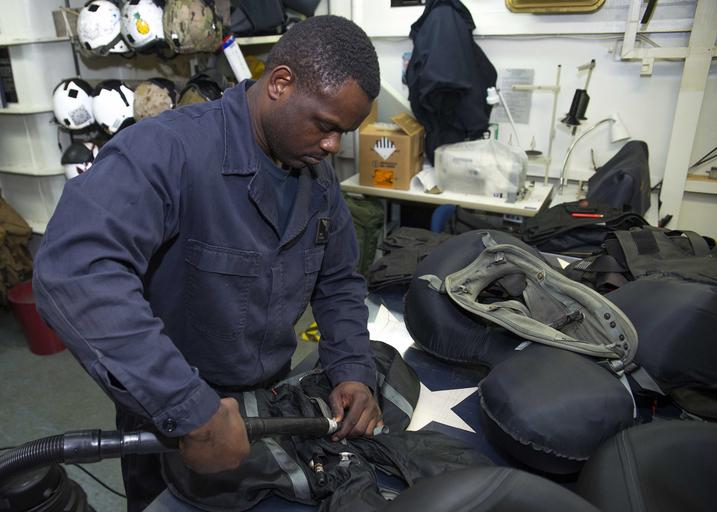 | Keywords: amphibious ready group amphibiousreadygroup lhd 1 lhd1 marines pr sailors training u.s. navy usnavy uss wasp usswasp wasp arg wasparg life preserver lifepreserver maintainence mediterranean sea mediterraneansea 160731-N-TO519-051 MEDITERRANEAN SEA (July 31, 2016) Aircrew Survival Equipmentman Airman Doug Giles deflates a life preserver during a quality assurance check aboard the amphibious assault ship USS Wasp (LHD 1) July 31, 2016. Wasp is deployed with the Wasp Amphibious Ready Group to support maritime security operations and theater security cooperation efforts in the U.S. 6th Fleet area of operations. (U.S. Navy photo by Mass Communication Specialist 2nd Class Nathan Wilkes/Released) 160731-N-TO519-051 MEDITERRANEAN SEA (July 31, 2016) Aircrew Survival Equipmentman Airman Doug Giles deflates a life preserver during a quality assurance check aboard the amphibious assault ship USS Wasp (LHD 1) July 31, 2016. Wasp is deployed with the Wasp Amphibious Ready Group to support maritime security operations and theater security cooperation efforts in the U.S. 6th Fleet area of operations. (U.S. Navy photo by Mass Communication Specialist 2nd Class Nathan Wilkes/Released) |