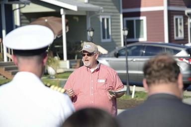 Keywords: 160802-N-DA275-014 160802-N-DA275-014.jpg en PORT ORCHARD Wash July 29 2016 “ Daryl Daugs the Executive Director of Habitat for Humanity for Kitsap County thanks Sailors including those from USS Nimitz CVN 68 and other volunteers from the local region for helping construct and finish the build of two homes prior to them being given away to local families during a ribbon-cutting ceremony Nimitz is currently undergoing an extended planned incremental maintenance availability at Puget Sound Naval Shipyard and Intermediate Maintenance Facility where the ship is receiving scheduled maintenance and upgrades U S Navy photo by Mass Communication Specialist 3rd Class Samuel H Bacon/Released <br>Unit Navy Media Content Services 2016-07-29 Samuel H Bacon https //www dvidshub net/image/2778070/160802-n-da275-014 160802-N-DA275-014 2016-08-09 00 10 NAVAL BASE KITSAP BREMERTON WASH US PD-USGov-Military-Navy Naval Base Kitsap USS Nimitz CVN-68 Images from DoD uploaded by FĂŚ
