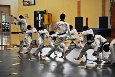 | Keywords: taekwondo u.s. army usarmy u.s. marine corps usmarinecorps u.s. navy usnavy u.s. air force usairforce presidio of monterey presidioofmonterey korea indoor sport team sport The Kukkiwon Taekwondo Demonstration Team from Korea performed a traditional martial arts demonstration at the Presidio of Monterey, California, Price Fitness Center Aug. 3. The Defense Language Institute Foreign Language Center Korean School hosted the event. Following the demonstration, the team answered questions in Korean for the benefit of the students. Kukkiwon, known as the World Taekwondo Headquarters, is the center of taekwondo culture in Korea with teams touring about 120 countries as ambassadors of the traditional martial art for the past 40 years. (U.S. Army photo by Patrick Bray/Released) The Kukkiwon Taekwondo Demonstration Team from Korea performed a traditional martial arts demonstration at the Presidio of Monterey, California, Price Fitness Center Aug. 3. The Defense Language Institute Foreign Language Center Korean School hosted the event. Following the demonstration, the team answered questions in Korean for the benefit of the students. Kukkiwon, known as the World Taekwondo Headquarters, is the center of taekwondo culture in Korea with teams touring about 120 countries as ambassadors of the traditional martial art for the past 40 years. (U.S. Army photo by Patrick Bray/Released) |