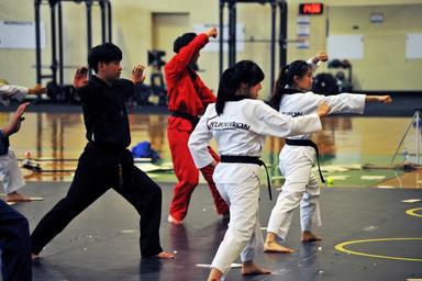 | Keywords: taekwondo u.s. army usarmy u.s. marine corps usmarinecorps u.s. navy usnavy u.s. air force usairforce presidio of monterey presidioofmonterey korea sport The Kukkiwon Taekwondo Demonstration Team from Korea performed a traditional martial arts demonstration at the Presidio of Monterey, California, Price Fitness Center Aug. 3. The Defense Language Institute Foreign Language Center Korean School hosted the event. Following the demonstration, the team answered questions in Korean for the benefit of the students. Kukkiwon, known as the World Taekwondo Headquarters, is the center of taekwondo culture in Korea with teams touring about 120 countries as ambassadors of the traditional martial art for the past 40 years. (U.S. Army photo by Patrick Bray/Released) The Kukkiwon Taekwondo Demonstration Team from Korea performed a traditional martial arts demonstration at the Presidio of Monterey, California, Price Fitness Center Aug. 3. The Defense Language Institute Foreign Language Center Korean School hosted the event. Following the demonstration, the team answered questions in Korean for the benefit of the students. Kukkiwon, known as the World Taekwondo Headquarters, is the center of taekwondo culture in Korea with teams touring about 120 countries as ambassadors of the traditional martial art for the past 40 years. (U.S. Army photo by Patrick Bray/Released) |