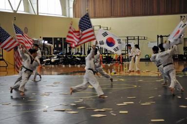 | Keywords: taekwondo u.s. army usarmy u.s. marine corps usmarinecorps u.s. navy usnavy u.s. air force usairforce presidio of monterey presidioofmonterey korea The Kukkiwon Taekwondo Demonstration Team from Korea performed a traditional martial arts demonstration at the Presidio of Monterey, California, Price Fitness Center Aug. 3. The Defense Language Institute Foreign Language Center Korean School hosted the event. Following the demonstration, the team answered questions in Korean for the benefit of the students. Kukkiwon, known as the World Taekwondo Headquarters, is the center of taekwondo culture in Korea with teams touring about 120 countries as ambassadors of the traditional martial art for the past 40 years. (U.S. Army photo by Patrick Bray/Released) The Kukkiwon Taekwondo Demonstration Team from Korea performed a traditional martial arts demonstration at the Presidio of Monterey, California, Price Fitness Center Aug. 3. The Defense Language Institute Foreign Language Center Korean School hosted the event. Following the demonstration, the team answered questions in Korean for the benefit of the students. Kukkiwon, known as the World Taekwondo Headquarters, is the center of taekwondo culture in Korea with teams touring about 120 countries as ambassadors of the traditional martial art for the past 40 years. (U.S. Army photo by Patrick Bray/Released) |