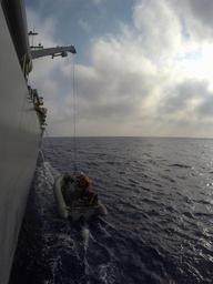 | Keywords: navy uss ross (ddg 71) ussrossddg71 ddg 71 ddg71 u.s. 6th fleet us6thfleet c6f ctf 65 ctf65 patrol mediterranean sea mediterraneansea outdoor sky 160809-N-FP878-338 MEDITERRANEAN SEA (Aug. 9, 2016) – USS Ross (DDG 71) conducts small boat operations with the Military Sealift Command fleet replenishment oiler USNS Big Horn (T-AO 198) Aug. 9, 2016. Ross, an Arleigh Burke-class guided-missile destroyer, forward-deployed to Rota, Spain, is conducting naval operations in the U.S. 6th Fleet Area of Operations in support of U.S. national security interests in Europe and Africa. (U.S. Navy photo by Mass Communication Specialist 1st Class Theron J. Godbold/Released) 160809-N-FP878-338 MEDITERRANEAN SEA (Aug. 9, 2016) – USS Ross (DDG 71) conducts small boat operations with the Military Sealift Command fleet replenishment oiler USNS Big Horn (T-AO 198) Aug. 9, 2016. Ross, an Arleigh Burke-class guided-missile destroyer, forward-deployed to Rota, Spain, is conducting naval operations in the U.S. 6th Fleet Area of Operations in support of U.S. national security interests in Europe and Africa. (U.S. Navy photo by Mass Communication Specialist 1st Class Theron J. Godbold/Released) |