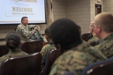 | Keywords: marine jrotc cadet junior reserve officer training corps juniorreserveofficertrainingcorps ba-22 ba22 parachute peoria illinois usa us U.S. Air Force Senior Master Sgt. Daniel Svymbersky, the aircrew flight equipment manager at the 182nd Operations Support Squadron, speaks to Richwoods High School Marine Corps Junior ROTC cadets about the BA-22 parachute used by C-130 Hercules aircrew members at the 182nd Airlift Wing in Peoria, Ill., Sept. 15, 2016. The cadets visited the installation to learn about the Air National Guard and its mission capabilities as part of the JROTC orientation event. (U.S. Air National Guard photo by Staff Sgt. Lealan Buehrer) U.S. Air Force Senior Master Sgt. Daniel Svymbersky, the aircrew flight equipment manager at the 182nd Operations Support Squadron, speaks to Richwoods High School Marine Corps Junior ROTC cadets about the BA-22 parachute used by C-130 Hercules aircrew members at the 182nd Airlift Wing in Peoria, Ill., Sept. 15, 2016. The cadets visited the installation to learn about the Air National Guard and its mission capabilities as part of the JROTC orientation event. (U.S. Air National Guard photo by Staff Sgt. Lealan Buehrer) |