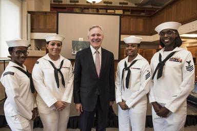 | Keywords: 160919-N-LV331-004 - SECNAV Ray Mabus with ceremonial honor guard.jpg en 160919-N-LV331-004 BOSTON Sept 19 2016 Secretary of the Navy SECNAV Ray Mabus poses for a photo with the ceremonial honor guard at the ship naming ceremony for the two future Military Sealift Command MSC fleet replenishment oilers USNS Lucy Stone T-AO 209 and USNS Sojourner Truth T-AO 210 Mabus is in the area as part of a North American tour to meet sailors Marines and government leaders U S Navy photo by Mass Communication Specialist 1st Class Armando Gonzales/Released 2016-09-19 15 22 20 160919-N-LV331-004 Navy PO1 Armando Gonzales U S Navy other versions PD-USGov-Military-Navy ImageNote 1 1141 365 607 864 3000 2003 2 SECNAV Ray Mabus ImageNoteEnd 1 Group photographs of military people September 2016 in Massachusetts Female sailors September 2016 photographs White clothing female Sailor caps of the United States Navy Sailor suits Ray Mabus in 2016 2016 in Boston |
