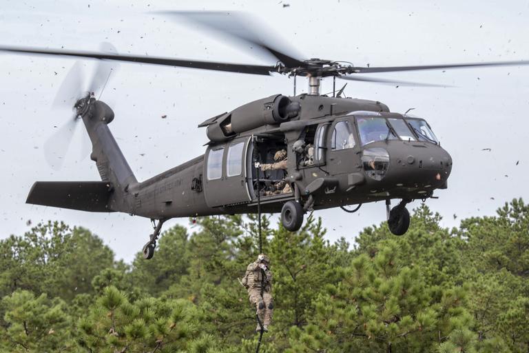 Keywords: usa usaf u.s. air force usairforce united states air force unitedstatesairforce air force airforce army joint training jointtraining exercise rail yard exerciserailyard tacp tactical air control party tacticalaircontrolparty jtac joint terminal air controller jointterminalaircontroller special forces specialforces soldier airman warren grove gunnery range warrengrovegunneryrange n.j. nj public domain publicdomain vehicle aircraft outdoor U.S. Air Force Tactical Air Control Party Airmen from the 227th Air Support Operations Squadron fast rope from a New Jersey Army National Guard UH-60 Black Hawk during Exercise Rail Yard, on Warren Grove Gunnery Range, N.J., Sept 21, 2016. Exercise Rail Yard is a joint training mission with active duty Air Force and Air National Guard TACP squadrons, as well as soldiers from the 7th, 10th, and 19th Special Forces Groups. (U.S. Air National Guard photo by Tech. Sgt. Matt Hecht/Released) U.S. Air Force Tactical Air Control Party Airmen from the 227th Air Support Operations Squadron fast rope from a New Jersey Army National Guard UH-60 Black Hawk during Exercise Rail Yard, on Warren Grove Gunnery Range, N.J., Sept 21, 2016. Exercise Rail Yard is a joint training mission with active duty Air Force and Air National Guard TACP squadrons, as well as soldiers from the 7th, 10th, and 19th Special Forces Groups. (U.S. Air National Guard photo by Tech. Sgt. Matt Hecht/Released) |