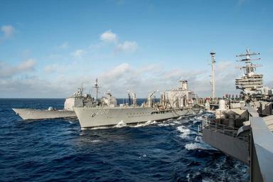 | Keywords: hurricane matthew hurricanematthew storm gtmo meteorology weather shelter evacuation navy u.s. navy usnavy uss ronald reagan (cvn 76) ussronaldreagancvn76 philippine sea philippinesea outdoor vehicle 161005-N-OI810-189 PHILIPPINE SEA (Oct. 5, 2016) Ticonderoga-class guided missile cruiser USS Chancellorsville (CG 62) steams alongside Military Sealift Command fleet replenishment oiler USNS Rappahannock (T-AO 204) during a replenishment-at-sea with the Navy's only forward-deployed aircraft carrier, USS Ronald Reagan (CVN 76). Ronald Reagan, the Carrier Strike Group Five (CSG 5) flagship, is on patrol supporting security and stability in the Indo-Asia-Pacific region. (U.S. Navy photo by Petty Officer 3rd Class Nathan Burke/Released) 161005-N-OI810-189 PHILIPPINE SEA (Oct. 5, 2016) Ticonderoga-class guided missile cruiser USS Chancellorsville (CG 62) steams alongside Military Sealift Command fleet replenishment oiler USNS Rappahannock (T-AO 204) during a replenishment-at-sea with the Navy's only forward-deployed aircraft carrier, USS Ronald Reagan (CVN 76). Ronald Reagan, the Carrier Strike Group Five (CSG 5) flagship, is on patrol supporting security and stability in the Indo-Asia-Pacific region. (U.S. Navy photo by Petty Officer 3rd Class Nathan Burke/Released) |