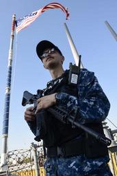 | Keywords: navy uss ross (ddg 71) ussrossddg71 ddg 71 ddg71 u.s. 6th fleet us6thfleet c6f ctf 65 ctf65 patrol larnaca cyprus larnacacyprus outdoor 161008-N-FP878-034 LARNACA, Cyprus (Oct. 8, 2016) Petty Officer 2nd Class Christian Sousa from Miami, stands armed sentry watch aboard USS Ross (DDG 71) Oct. 8, 2016. Ross, an Arleigh Burke-class guided-missile destroyer, forward-deployed to Rota, Spain, is conducting naval operations in the U.S. 6th Fleet Area of Operations in support of U.S. national security interests in Europe and Africa. (U.S. Navy photo by Petty Officer 1st Class Theron J. Godbold/Released) 161008-N-FP878-034 LARNACA, Cyprus (Oct. 8, 2016) Petty Officer 2nd Class Christian Sousa from Miami, stands armed sentry watch aboard USS Ross (DDG 71) Oct. 8, 2016. Ross, an Arleigh Burke-class guided-missile destroyer, forward-deployed to Rota, Spain, is conducting naval operations in the U.S. 6th Fleet Area of Operations in support of U.S. national security interests in Europe and Africa. (U.S. Navy photo by Petty Officer 1st Class Theron J. Godbold/Released) |