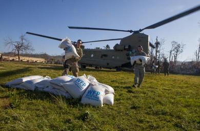 | Keywords: dame marie damemarie haiti ht outdoor aircraft vehicle rotor blade U.S. service members from Joint Task Force Matthew stack bags of rice in Dame Marie, Haiti, during a supply drop to the areas affected by Hurricane Matthew, Oct. 12, 2016. After five days of supply drop operations, Joint Task Force Matthew has delivered over 116 metric tons of supplies utilizing CH-53E Super Stallion and CH-47 Chinook helicopters. Joint Task Force Matthew, a U.S. Southern Command-directed team, is comprised of Marines, soldiers, sailors and airmen deployed to Port-au-Prince at the request of the Government of Haiti on a mission to provide humanitarian and disaster relief assistance in the aftermath of Hurricane Matthew. (U.S. Marine Corps photo by Sgt. Adwin Esters) www.dvidshub.net U.S. service members from Joint Task Force Matthew stack bags of rice in Dame Marie, Haiti, during a supply drop to the areas affected by Hurricane Matthew, Oct. 12, 2016. After five days of supply drop operations, Joint Task Force Matthew has delivered over 116 metric tons of supplies utilizing CH-53E Super Stallion and CH-47 Chinook helicopters. Joint Task Force Matthew, a U.S. Southern Command-directed team, is comprised of Marines, soldiers, sailors and airmen deployed to Port-au-Prince at the request of the Government of Haiti on a mission to provide humanitarian and disaster relief assistance in the aftermath of Hurricane Matthew. (U.S. Marine Corps photo by Sgt. Adwin Esters) www.dvidshub.net |