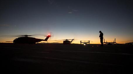 | Keywords: wti usmctecom mawts-1 mawts1 2/3 23 mv-22 mv22 osprey 29 palms 29palms ch-53 ch53 vmm-162 vmm162 finex long exposures longexposures twentynine palms twentyninepalms california united states unitedstates us outdoor sunset sky U.S. Marine Corps CH-53E Super Stallions and a MV-22B Osprey assigned to Marine Aviation Weapons and Tactics Squadron One (MAWTS-1) taxi down a runway during FINEX 1 in support of Weapons and Tactics Instructor course (WTI)1-17 at SELF, Marine Corps Air Ground Combat Center Twentynine Palms, Calif., Oct. 18, 2016. FINEX 1 was part of WTI 1-17, a seven-week training event hosted by MAWTS-1 cadre, which emphasizes operational integration of the six functions of Marine Corps aviation in support of a Marine Air Ground Task Force. MAWTS-1 provides standardized advanced tactical training and certification of unit instructor qualifications to support Marine Aviation Training and Readiness and assists in developing and employing aviation weapons and tactics. (U.S. Marine Corps photo by Lance Cpl. Danny Gonzalez) www.dvidshub.net U.S. Marine Corps CH-53E Super Stallions and a MV-22B Osprey assigned to Marine Aviation Weapons and Tactics Squadron One (MAWTS-1) taxi down a runway during FINEX 1 in support of Weapons and Tactics Instructor course (WTI)1-17 at SELF, Marine Corps Air Ground Combat Center Twentynine Palms, Calif., Oct. 18, 2016. FINEX 1 was part of WTI 1-17, a seven-week training event hosted by MAWTS-1 cadre, which emphasizes operational integration of the six functions of Marine Corps aviation in support of a Marine Air Ground Task Force. MAWTS-1 provides standardized advanced tactical training and certification of unit instructor qualifications to support Marine Aviation Training and Readiness and assists in developing and employing aviation weapons and tactics. (U.S. Marine Corps photo by Lance Cpl. Danny Gonzalez) www.dvidshub.net |