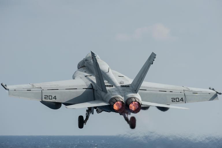 Keywords: philippine sea philippinesea airplane aircraft vehicle airliner jet outdoor jetliner 161102-N-OI810-289 PHILIPPINE SEA (Nov. 2, 2016) An F/A-18E Super Hornet assigned to the "Royal Maces" of Strike Fighter Squadron (VFA) 27 launches from the flight deck of the Navyâs only forward-deployed aircraft carrier, USS Ronald Reagan (CVN 76), during Keen Sword 17 (KS17). KS17 is a biennial, Chairman of the Joint Chiefs of Staff-directed, U.S. Pacific Command-sponsored field training exercise (FTX). KS17 is a joint/bilateral FTX designed to meet mutual defense objectives by increasing combat readiness and interoperability between Japan Self-Defense Forces (JSDF) and U.S. forces. Ronald Reagan, the flagship of Carrier Strike Group Five (CSG 5), is on patrol in the Philippine Sea supporting security and stability in the Indo-Asia-Pacific region. (U.S. Navy photo by Petty Officer 3rd Class Nathan Burke/Released) 161102-N-OI810-289 PHILIPPINE SEA (Nov. 2, 2016) An F/A-18E Super Hornet assigned to the "Royal Maces" of Strike Fighter Squadron (VFA) 27 launches from the flight deck of the Navyâs only forward-deployed aircraft carrier, USS Ronald Reagan (CVN 76), during Keen Sword 17 (KS17). KS17 is a biennial, Chairman of the Joint Chiefs of Staff-directed, U.S. Pacific Command-sponsored field training exercise (FTX). KS17 is a joint/bilateral FTX designed to meet mutual defense objectives by increasing combat readiness and interoperability between Japan Self-Defense Forces (JSDF) and U.S. forces. Ronald Reagan, the flagship of Carrier Strike Group Five (CSG 5), is on patrol in the Philippine Sea supporting security and stability in the Indo-Asia-Pacific region. (U.S. Navy photo by Petty Officer 3rd Class Nathan Burke/Released)