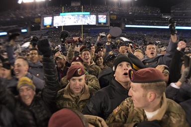 | Keywords: army navy armynavy army football armyfootball athletics football sports people crowd Army West Point Football fans celebrate Army winning the 117th Army Navy Game presented by USAA at M&T Bank Stadium in Baltimore December 10, 2016. Army defeated the U.S. Naval Academy 21-17 snapping Navy’s 14-year win streak. (U.S. Army photo by: John Pellino) Army West Point Football fans celebrate Army winning the 117th Army Navy Game presented by USAA at M&T Bank Stadium in Baltimore December 10, 2016. Army defeated the U.S. Naval Academy 21-17 snapping Navy’s 14-year win streak. (U.S. Army photo by: John Pellino) |