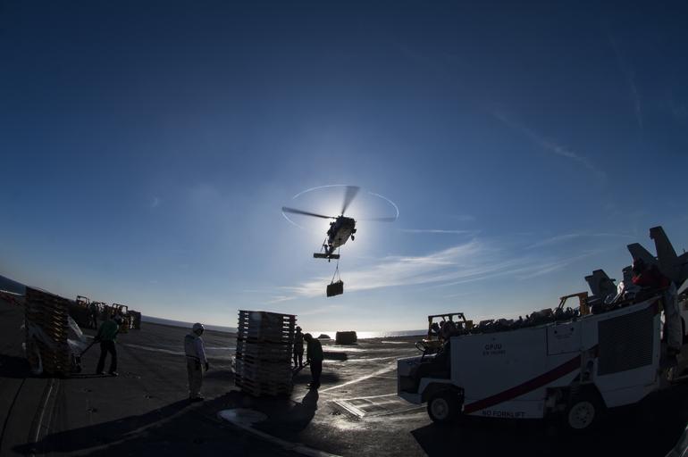 | Keywords: deployment ike cvn69 nmcs dvids bulk import dvidsbulkimport mediterranean sea mediterraneansea outdoor 161222-N-QI061-069 MEDITERRANEAN SEA (Dec. 22, 2016) An MH-60S Sea Hawk helicopter assigned to the Dusty Dogs of Helicopter Sea Combat Squadron (HSC) 7 delivers cargo to the aircraft carrier USS Dwight D. Eisenhower (CVN 69) during a replenishment-at-sea with the fast combat support ship USNS Arctic (T-AOE 8). Dwight D. Eisenhower, deployed as part of the Eisenhower Carrier Strike Group, is conducting naval operations in the U.S. 6th Fleet area of operations in support of U.S. national security interests in Europe. (U.S. Navy photo by Mass Communication Specialist 3rd Class Nathan T. Beard/Released) www.dvidshub.net 161222-N-QI061-069 MEDITERRANEAN SEA (Dec. 22, 2016) An MH-60S Sea Hawk helicopter assigned to the Dusty Dogs of Helicopter Sea Combat Squadron (HSC) 7 delivers cargo to the aircraft carrier USS Dwight D. Eisenhower (CVN 69) during a replenishment-at-sea with the fast combat support ship USNS Arctic (T-AOE 8). Dwight D. Eisenhower, deployed as part of the Eisenhower Carrier Strike Group, is conducting naval operations in the U.S. 6th Fleet area of operations in support of U.S. national security interests in Europe. (U.S. Navy photo by Mass Communication Specialist 3rd Class Nathan T. Beard/Released) www.dvidshub.net |