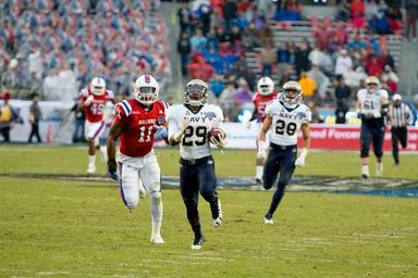 | Keywords: afb football bowl game bowlgame tcu navy la tech latech 2016 fort worth fortworth texas united states unitedstates us sport outdoor team sport field game Navy Midshipmen Darryl Bonner runs in for a 64-yard touchdown as they play the Louisiana Tech Bulldogs during the 14th Armed Forces Bowl game at the Amon G. Carter Stadium in Fort Worth, Texas, Dec. 23, 2016. The Bulldogs won in the final seconds of the game with a field goal to score 48 to 45. U.S. Coast Guard photo by Petty Officer 1st Class Andrew Kendrick. www.dvidshub.net Navy Midshipmen Darryl Bonner runs in for a 64-yard touchdown as they play the Louisiana Tech Bulldogs during the 14th Armed Forces Bowl game at the Amon G. Carter Stadium in Fort Worth, Texas, Dec. 23, 2016. The Bulldogs won in the final seconds of the game with a field goal to score 48 to 45. U.S. Coast Guard photo by Petty Officer 1st Class Andrew Kendrick. www.dvidshub.net |