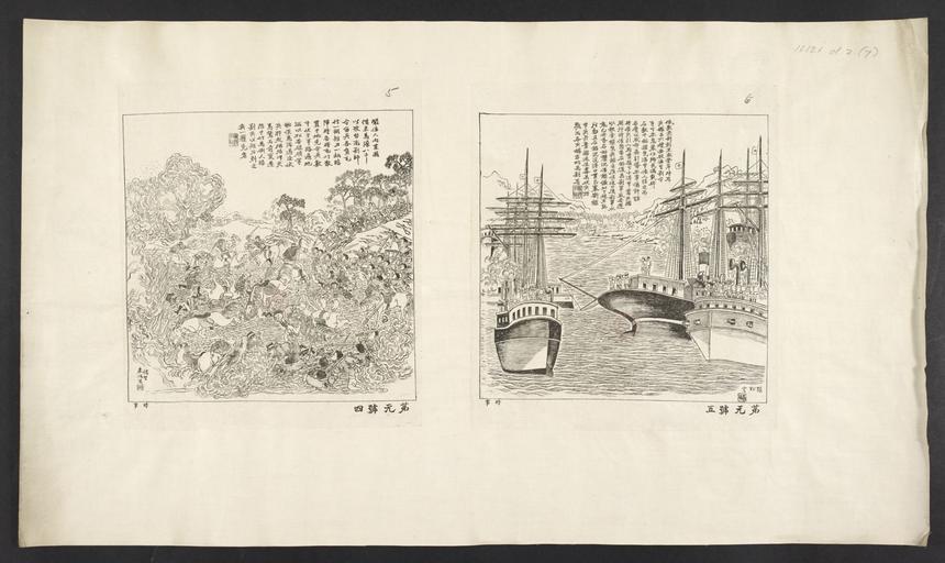 | Keywords: 16126.d.2(7)-(Left) The Japanese reportedly borrow from another country eight thousand cavalry to attack Tainan... (Right) Japanese forces are wounded and do not dare to land on the Chinese shores.jpg accession number Creator Left å„’è³¢æ ±é´» - Right å¼µæ ¾é›² ï¼ æ ¾é›²å¼µæ¨¹åŸ¹ï¼Ÿ - Size cm 62 5 35 9 exhibition history Institution British Library object history object type Information field Title Original Chinese Left èžå 人å‘å›½å Ÿæ ¥é¦¬éšŠå…«åƒä»¥æ”»å°å—ã ‚ã ‚ã ‚ Right å æ•°å—åŠ‰å‰µä¸æ•¢ç™»å²¸æ™‚ã ‚ã ‚ã ‚ ; Information field Title Pinyin Left Wen wo ren xiang guo jie lai ma dui ba qian yi gong Tainan Right Wo shu shou liu chuan bu gan deng anshi ; Information field Title Japanese Translation Left)èžãã¨ã“ã‚ã«ã‚ˆã‚Œã°æ—¥æ ¬äººã¯æŸå›½ã‹ã‚‰é¨Žå…µéšŠå…«åƒã‚’å Ÿã‚Šå°å—ã«é ²æ”»ã—㟠¦ Rightï¼‰æ—¥æ ¬äººã¯æ•°åº¦ã«ã‚ãŸã‚Šå‚·ã‚’å—ã‘ã 上陸ã™ã‚‹ã®ã‚’ãŸã‚らã£ã¦ã„ã‚‹ã„る時 ¦ ; Information field Publisher 表記無㗠Unknown ; Information field British Library Shelfmark 16126 d 2 7 PD-old-auto place of creation China place of discovery cite web The Sino-Japanese War of 1894-1895 as seen in prints and archives http //www jacar go jp/english/jacarbl-fsjwar-e/gallery/gallery003 html Japan Centre for Asian Historical Records and the British Library British Library image 16126 d 2 7 BLL01016132528 yes Left The Japanese reportedly borrow from another country eight thousand cavalry to attack Tainan Right Japanese forces are wounded and do not dare to land on the Chinese shores Uploaded with GWToolset 16126 d 2 7 - Left The Japanese reportedly borrow from another country eight thousand cavalry to attack Tainan Right Japanese forces are wounded and do not dare to land on the Chinese shores http //www jacar go jp/jacarbl-fsjwar-j/gallery/images/zoom/16126 d 2/16126 d 2_ 7 _B20102-73 jpg British Library Asian and African Collections Prints of the First Sino-Japanese War in the British Library |