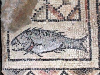 Keywords: 1619433-The Pore269 fish-Porec.jpg en Porec Croatie Basilique Ste Euphrasie http //www flickr com/photos/10886723 N03/2110548734/in/set-72157625580357875/ author inconnue PD-old Ichthys Mosaics of fish Mosaics of Euphrasian Basilica