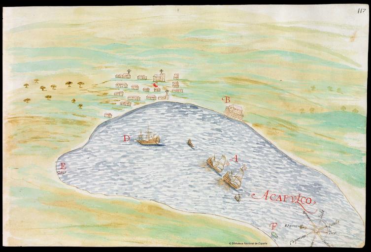 | Keywords: 1632 Cardona Descripcion Indias (117).jpg página 116 las letras significan <br> A Los navíos del descubrimiento <br> B El castillo de San Diego <br> C El pueblo <br> D Una nao que había venido del Japón <br> E Los Manzanillos <br> F El Grifo s of many northern and southern lands and seas in the Indies specifically the discovery of the kingdom of California written by captain Nicolás de Cardona after his expedition of 1614 On page 116 the legend reads <br> A The ships of the expedition <br> B The castle of San Diego <br> C The town <br> D A ship that has come from Japan <br> E Los Manzanillos <br> F El Grifo 1632-06-24 Descripciones geográficas e hidrográficas de muchas tierras y mares del Norte y Sur en las Indias en especial del descubrimiento del Reino de California hecho con trabajo e industria por el capitán y cabo Nicolás de Cardona dirigidas al Exmo D Gaspar de Guzmán Conde de Olivares http //bdh bne es/bnesearch/detalle/bdh0000011007 Biblioteca Digital Hispánica Biblioteca Nacional de España Nicolás de Cardona other versions PD-Art PD-old-100 ca 1632 Spain watermark Descripciones geográphicas e hydrográphicas de muchas tierras y mares del Norte y Sur en las Indias en especial del descubrimiento del Reino de la California Maps by Nicolás de Cardona Watercolor maps Maps in Spanish Pictorial maps 1632 maps Old manuscript maps History of Acapulco Old maps of cities in Mexico Ships on maps Ships of Japan |