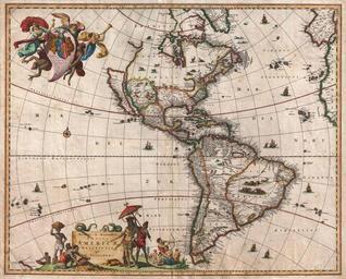 | Keywords: 1658 Visscher Map of North America and South America - Geographicus - America-visscher-1658.jpg Artwork User Multichill/Geographicus/cartographers visscher txt A striking first edition example of an extremely important and influential 1658 map of the Americas by Nicholas Janzoon Visscher Covers all of the New World the eastern extensions of Europe and Africa and some Pacific Islands This map proved extremely influential and due to multiple pirated examples and reissues by competing Dutch map publishers became the dominant representation of America well into the early 18th century That said the first edition is notably different from its successors on a number of points that firmly establish its preeminence as a cartographic milestone By far this map ™s most interesting cartographic elements deal with its unusual treatment of North America with California represented as an island the Great Lakes rendered as a single body of water open to the west and Anian appearing far to the north The popularity of this map among prominent Dutch map publishers and cartographers of the late 17th century played a significant role in promoting the California as an Island hypothesis The concept of an insular California first appeared as a work of fiction in Garci Rodriguez de Montalvo's c 1510 romance Las Sergas de Esplandian where he writes Know that on the right hand of the Indies there is an island called California very close to the side of the Terrestrial Paradise; and it is peopled by black women without any man among them for they live in the manner of Amazons Baja California was subsequently discovered in 1533 by Fortun Ximenez who had been sent to the area by Hernan Cortez When Cortez himself traveled to Baja he must have had Montalvo's novel in mind for he immediately claimed the Island of California for the Spanish King By the late 16th and early 17th century ample evidence had been amassed through explorations of the region by Francisco de Ulloa Hernando de Alarcon and others that California was in fact a peninsula However by this time other factors were in play Francis Drake had sailed north and claimed New Albion near modern day Washington or Vancouver for England The Spanish thus needed to promote Cortez's claim on the Island of California to preempt English claims on the western coast of North America The significant influence of the Spanish crown on European cartographers caused a major resurgence of the Insular California theory About half a century after this map was drawn Eusebio Kino a Jesuit missionary published his own 1705 account of travels overland from Mexico to California establishing conclusively the peninsularity of California Visscher ™s rendering of the Great Lakes as a single body of water open to the west is of particular interest and is the most ephemeral element of this map being updated in subsequent editions to reflect ongoing European exploration of the region At first glance Visscher ™s great inland sea appears uncannily like Verazanno ™s Sea a 16th century speculative body of water extending to the Pacific through the center of North America which was no doubt a direct influence on the water form established here Visscher describes his inland sea with the following Latin note Lacus iste quantum ex accolis colligi potuiy trecenta ut minimum miliaria en longitudinem pateat This lake as far as can be learned from the inhabitants stretches at least three hundred miles in length This is curiously identical to the text used by Jodocus Hondius on his world map of 1611 to describe his rendering of Verazanno ™s Sea The next edition of this map would see this great inland sea replaced by more contemporary rendering of the Great Lakes taken from the explorations of La Salle Hennepin and others North of insular California we find the land of Anian separated from the North American mainland by a narrow strait 1658 undated Size in 22 18 object history credit line accession number America-visscher-1658 Visscher N <i>Atlas Contractus Orbis Terrarum</i> Amsterdam c 1659 Aso independently issued Geographicus-source PD-old-100 Old maps of the Americas 1658 maps North America in the 17th century Maps in Latin Old maps of seas Nicolaes Visscher I |