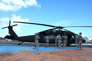| Keywords: 166th Regional Support Group, U.S. Army Reserve-Puerto Rico in a UH-60 Black Hawk from San Juan to Ceiba Puerto Rico.JPG en In a joint effort to provide a great opportunity for excellent training the Army National Guard Aviation Support Facility provided transportation to soldiers from the 166th Regional Support Group U S Army Reserve-Puerto Rico in a UH-60 Black Hawk from San Juan to Ceiba Puerto Rico as part of the Noncommissioned officer Led Battle Assembly April 11 2015-04-11 The U S Army Reserve Home Page in public domain http //www usar army mil/News/Images aspx igphoto 2001256558 1st MSC other versions PD-USGov United States Army Ceiba Puerto Rico Puerto Rico Ensenada Honda Ceiba Puerto Rico UH-60 Black Hawk |