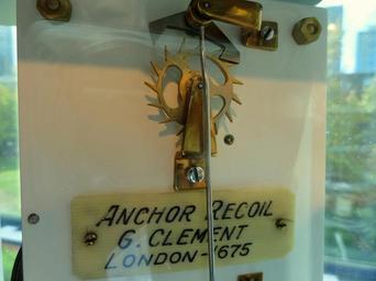 | Keywords: 1675 anchor recoil escapement, G. Clement, London - Franklin Institue - DSC06665.JPG Exhibit in the Franklin Institute Philadelphia Pennsylvania USA I took this photograph 2011-10-20 11 51 35 Daderot Escapement collection in the Franklin Institute |