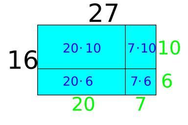 | Keywords: 16x27 Illustration with different areas 4.svg en 16x27 Illustration with different areas step 1 A few different images to illustrate how 16 27 equals 16 20+16 7 or 10 27+6 27 or 10 20+10 7+6 20+6 7 2012-06-10 own Other fields T + cc-zero SVG calculus examples Multiplication Uploaded with UploadWizard SVG files by Averater |