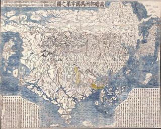 | Keywords: 1710 First Japanese Buddhist Map of the World Showing Europe, America, and Africa - Geographicus - NansenBushu-hotan-1710.jpg A seminal map This is the first Japanese printed map to depict the world including Europe and America from a Buddhist cosmographical perspective Printed by woodblock in 1710 Hoei 7 this map was composed by the Buddhist monk Rokashi Hotan Inspired by the 1653 publication of Si-yu-ki a pilgrimage narrative of the Chinese monk Hsuang-Tsang's 602-604 travels to India in search of sacred Sanskrit writings Rokashi Hotan's map attempts to update Buddhist mythological cartography as exemplified in the 1634 manuscript map Gotenjikuzu Map of the Five Regions of India to correspond with the Si-yu-ki as well as with contemporary and ancient religious texts Chinese annals travel narratives and even some European maps Rokashi Hotan lists these texts 102 in all at the top of the map The consequent product of Rokashi Hotan's work is this magnificent amalgam of disparate ideas and traditions In essence this is a traditional Buddhist world view in the Gotenjikuzu mold centered on the world spanning continent of Jambu-Dvipa At its center is Lake Anavatapta a whirlpool-like quadruple helix lake believed to be the center of the universe This lake which is commonly associated with Lake Manasarovar in northern India is believed in Buddhist mythology to be the legendary site where Queen Maya conceived the Buddha From the quadrouple beast headed helix heads of a horse a lion an elephant and an ox of Manasarovar or Lake Anavatapta radiate the four sacred rivers of the region the Indus the Ganges the Bramaputra and the Sutlej South of Jambu-Dvipa India is recognizable for in its peninsular form Japan itself appears as a series of Islands in the upper right and like India is one of the few recognizable elements - at least from a cartographic perspective China and Korea appear to the west of Japan and are vaguely identifiable geographically which itself represents a significant advancement over the Gotenjikuzu map Southeast Asia also makes one of its first appearances in a Japanese Buddhist map as an island cluster to the east of India On the opposite side of the map a series of islands is intended to represent Europe which had no place at all in earlier Buddhist world maps making this one of the first Japanese maps to depict Europe Umukari Hungary Oranda Baratan Komo Holland or the country of the red hair Arubaniya Albania Itarya Italy Suransa France and Inkeresu England are all named Africa appears as a small island in the western sea identified as the Land of Western Women Of special note is Rokashi Hotan's mapping of the Americas Prior to this map America had rarely if ever been depicted on Japanese maps so Rokashi Hotan turned to the Chinese map Daimin Kyuhen Zu Map of China under the Ming Dynasty and its surrounding Countries from which he copied both the small island-like form of South America just south of Japan and the curious land bridge the Aelutian Islands connecting Asia to what the Japanese historians Nobuo Muroga and Kazutaka Unno conclude must undoubtedly be a reflection of North America page 63 Whether this represents ancient knowledge from early Chinese navigations in this region for which there is some literary if not historical evidence or merely a printing error we can only speculate While this map represents a significant step forward in the Japanese attempt to combine religious and contemporary geographic knowledge it remains in essence a Buddhist map It is likely that Rokashi Hotan was aware important European style maps circulating in China at the time The Mateo Ricci Map is one such example and copies were known to have reached Japan in the 17th century It is curious that Rokashi Hotan chose to ignore it and other Eurocentric data in exchange for a religious world view while at the same time attempting to reconcile Buddhist and modern geography 1710 dated Size in 56 5 45 object history credit line accession number NansenBushu-hotan-1710 Geographicus-source PD-Art-100 Maps in Japanese Old maps of Asia 1710s maps of the world 1710 maps Buddhist scriptures |