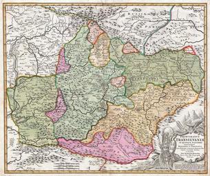 | Keywords: 1720 Homann Map of Transylvania ( Romania ) - Geographicus - PrincipatusTransilvaniae-homann-1716.jpg A striking example of J B Homann ™s c 1716 map of Transylvania Covers what is today the northern part of Romania from the Bereton River eastward as far as Castle Boza Color coded according to district with superb detail through Notes villages cities forests rivers monasteries castles and lakes Shows only one major city Hermannstadt or Sibiu Large decorative military themed cartouche in the lower right quadrant Prepared by J B Homann for issue in this important c 1720 Grosser Atlas Harta Transilvaniei la 1720 realizată de J B Homann circa 1720 undated Size in 23 19 object history credit line accession number PrincipatusTransilvaniae-homann-1716 Homann J B <i>Grosser Atlas</i> c 1720 Geographicus-source PD-old-100 Johann Baptist Homann Grosser Atlas über die Ganze Welt Homann Old maps of Transylvania 1720 maps Maps in Latin |