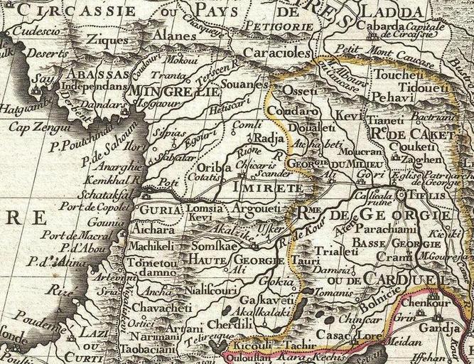 | Keywords: 1724 De L'Isle Map of Persia (Iran, Iraq, Afghanistan) - Geographicus - Persia-delisle-1724. C.jpg Artwork User Multichill/Geographicus/cartographers delisle txt A fine first edition example of Guillaume De L ™Isle ™s important 1724 map of Persia Covers from the Crimea and the Sea of Azov south to the Persian Gulf and the Straight of Ormuz and east as far as Kashmir Cachmir and Kabul Caboul This map includes modern day Iran Iraq Afghanistan Kuwait Uzbekistan Turkmenistan Tajikistan Georgia Armenia and Azerbaijan with adjacent parts of Russia Pakistan Turkey Ukraine and Kazakhstan and Arabia Cartographically De L ™Isle ™s mapping of Persia marks a significant advance in European cartographic knowledge of the region This map benefits considerably from Russian cartographic surveys and other sources no doubt smuggled to Guillaume De L ™Isle by his brother Nicholas de L ™Isle who held a cartographic position with the Russian Academy of Sciences The extent to which Russian data influenced this map is nowhere more evident than in De L ™Isle ™s remarkable rendering of the Caspian Sea “ one of the first accurate maps of the great lake to follow Van Verden ™s historic survey of 1721 Russian cartographic information is also apparent with regard to place names such as the Russian name for the Aral Sea Glouchoiye It is equally likely that De L ™Isle drew on Russian sources for his mapping of the Silk Route centers of Bukhara Samarkand and Ferghana which were known stopping points for Russian trade envoys to China For the remainder of Persia De L ™Isle most likely updated Persian and Arabic cartographic information with reports from Georgian and Armenian traders and mercenaries active throughout Persia It may be through these sources that De L ™Isle was able to add considerable geographic information regarding trade routes and place names in central Persia These include such significant advances as the identification of Terheran Tiheran the current capital of Iran which is notable absent it earlier European maps of Persia This map was drawn by Guillaume De L ™Isle and engraved by P Starckman It issued independently as well as included in a number of composite atlases including De L ™Isle ™s 1731 Atlas de Geographie A number of reissues by Buache Covens Mortier and others followed 1724 undated Size in 25 20 object history credit line accession number Persia-delisle-1724 Image 1724 De L'Isle Map of Persia Iran Iraq Afghanistan - Geographicus - Persia-delisle-1724 jpg Original source De L'Isle G <i>Atlas de Geographie</i> c 1730 Geographicus-source PD-art-100 ImageNote 1 749 348 92 34 893 685 2 Tiflis Tbilisi ImageNoteEnd 1 ImageNote 2 435 332 146 37 893 685 2 Imirete ImageNoteEnd 2 ImageNote 3 293 325 53 29 893 685 2 Poti ImageNoteEnd 3 ImageNote 4 590 456 89 29 893 685 2 Trialeti ImageNoteEnd 4 ImageNote 5 521 155 82 26 893 685 2 Osseti ImageNoteEnd 5 ImageNote 6 262 373 83 41 893 685 2 Guria ImageNoteEnd 6 ImageNote 7 475 245 69 26 893 685 2 Radja ImageNoteEnd 7 Guillaume Delisle 1724 maps Russian Academy of Sciences 18th-century maps of Georgia Covens en Mortier French language maps of Europe |