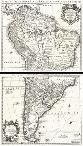 | Keywords: 1730 Covens and Mortier Map of South America - Geographicus - SouthAmerica-covensmortier-1730.jpg An extraordinary example of a c 1730 two map set depicting South America This is Covens and Mortier's c 1730 reissue of Guillaume de L'Isle's magnificent c 1708 map of this region The northern sheet covers from Costa Rica and Barbados south roughly to the Tropic of Capricorn or more precisely 50 degrees south latitude Southern sheet covers roughly from 18 degrees south latitude south to Tierra del Fuego Both maps are notable for their extraordinary condition with a dark strong impression on clean white paper Early 18th century maps rarely appear in this superb condition The northern sheet of this set like most early maps of the area contrasts a detailed mapping of the coast with a speculative discussion of the interior particularly the Amazon Basin Offers a fairly accurate mapping of both the east and west coasts with exceptional detail in the populated Andean regions of Columbia Ecuador Labeled Quito and Peru Notes Cuzco Lima Quito Valladolid Arequipa Trujillo and other important trading centers of the region In Portuguese controlled Brazil Rio de Janeiro San Salvador and San Sebastian are noted Lake Maracaibo in modern day Venezuela is slightly malformed and elongated The interior is where this map gets interesting De L ™lsle was a cautious and scientific cartographer who based his maps on the first hand reports from sailors merchants and missionaries that at the time were flowing into Paris at an unprecedented rate Consequently many of his maps offer significant cartographic advances over their predecessors This map is no exception and De L'Isle credits the mappings and explorations of Alonzo de Herrera Johannes de Laet P P D Acuna and M Rodriguez Nonetheless De L'Isle's mapping of South America's interior is full of inaccuracy curiosities and ample fodder for the gold hunting European Our survey of this map begins with De L'Isle's impressively accurate mapping of the Amazon and Orinoco River systems - though he does erroneously connect the two an understandable error common to maps of the period Roughly where the Grand Sabana is today in modern day Venezuela De L'Isle speculates the location of Lake Parima and the city of El Dorado curiously this is actually gold rich region though difficult to access and mine Further South he notates numerous gold rich indigenous groups including Los Plateros and Xarayes The Xarayes a corruption of Xaraiés meaning Masters of the River were an indigenous people occupying what are today parts of Brazil's Matte Grosso and the Pantanal When Spanish and Portuguese explorers first navigated up the Paraguay River as always in search of El Dorado they encountered the vast Pantanal flood plain at the height of its annual inundation Understandably misinterpreting the flood plain as a gigantic inland sea they named it after the local inhabitants the Xaraies The Laguna de los Xarayes almost immediately began to appear on early maps of the region and at the same time almost immediately took on a legendary aspect Later missionaries and chroniclers particularly DÃaz de Guzmán imagined an island in this lake and curiously identified it as an Island of Paradise an island of the Paraguay River more than ten leagues 56 km long two or three 11-16 km wide A very mild land rich in a thousand types of wild fruit among them grapes pears and olives the Indians created plantations throughout and throughout the year sow and reap with no difference in winter or summer the Indians of that island are of good will and are friends to the Spaniards; Orejón they call them and they have their ears pierced with wheels of wood which occupy the entire hole They live in round houses not as a village but each apart though keep up with each other in much peace and friendship They called of old this island Land of Paradise for its abundance and wonderful qualities circa 1730 undated Size in 23 41 object history credit line accession number SouthAmerica-covensmortier-1730 Covens J Mortier C <i>Atlas nouveau contenant toutes les parties su Monde ou sont exactement remarquees les empires monarchies royaumes etats republiques c Par Guillaume de l'Isle</i> c 1830 editon Geographicus-source PD-old-100 1730 maps Old maps of South America Covens en Mortier French language maps of South America Old maps of the Amazon River Old maps of the RÃo de la Plata 1730 in South America |