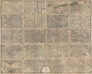 Keywords: 1739 Bretez - Turgot View and Map of Paris, France (c. 1900 Taride issue) - Geographicus - Paris-turgot-1909.jpg LargeImage This is the c 1900 Taride edition of Louis Bretez and Michel-Etienne Turgot's monumental 1739 map of Paris Turgot's map of Paris is possibly the most ambitious urban mapping ever undertaken Shows the whole of 18th century Paris and offers a wonderful perspective on the city prior to Baron Georges Eugène Haussmann ™s 19th-century redesign Turgot who held the mayor-like office of PrĂ©vĂ´t des Marchands de Paris commissioned Louis Bretez and Claude Lucas to produce this map in 1734 Oriented to the east on an axonometrical projection this map is best understood as an aerial view where in every building window tree shadow and park is shown It took the team nearly five years of exhaustive sketching and surveying to assemble this masterpiece In order to produce the thousands of sketches and surveys required to complete this map Bretez was issued a permit to enter every building in Paris The completed map which consists of twenty individual sheets can be assembled into a massive and striking display roughly 8 feet by 10 feet Twenty-one loose sheets embraced in a marbled folio this is Alphonse Taride's c 1900 issue of Bretez's Plan de Paris 1739 original / c 1900 Taride Issue Size in 106 86 object history credit line accession number Paris-turgot-1909 Geographicus-source PD-old Plan de Turgot 1739 maps Louis Bretez Maps in French
