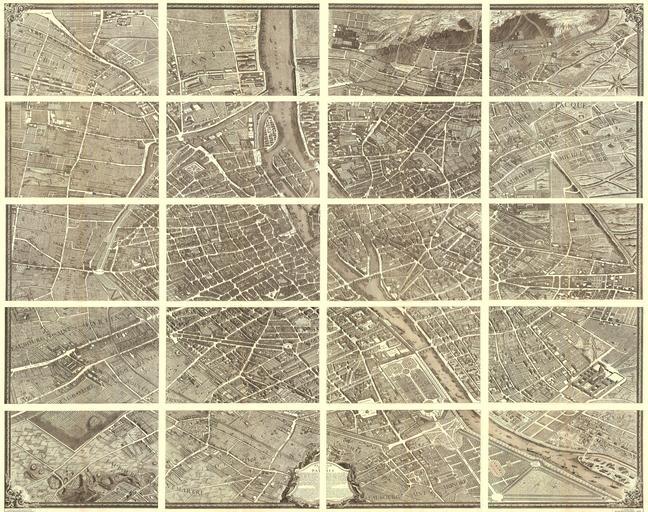 | Keywords: 1739 Bretez - Turgot View and Map of Paris, France (c. 1900 Taride issue) - Geographicus - Paris-turgot-1900.jpg This is the c 1900 Taride edition of Louis Bretez and Michel-Etienne Turgot's monumental 1739 map of Paris Turgot's map of Paris is possibly the most ambitious urban mapping ever undertaken Shows the whole of 18th century Paris and offers a wonderful perspective on the city prior to Baron Georges Eugène Haussmann ™s 19th-century redesign Turgot who held the mayor-like office of PrĂ©vĂ´t des Marchands de Paris commissioned Louis Bretez and Claude Lucas to produce this map in 1734 Oriented to the east on an axonometrical projection this map is best understood as an aerial view where in every building window tree shadow and park is shown It took the team nearly five years of exhaustive sketching and surveying to assemble this masterpiece In order to produce the thousands of sketches and surveys required to complete this map Bretez was issued a permit to enter every building in Paris The completed map which consists of twenty individual sheets can be assembled into a massive and striking display roughly 8 feet by 10 feet Twenty-one loose sheets embraced in a cardboard folio this is Alphonse Taride's c 1900 issue of Bretez's Plan de Paris 1739 original issue / c 1900 Taride Issue Size in 106 86 object history credit line accession number Paris-turgot-1900 Geographicus-source PD-Art-100 Louis Bretez 1739 maps Plan de Turgot Maps in French |