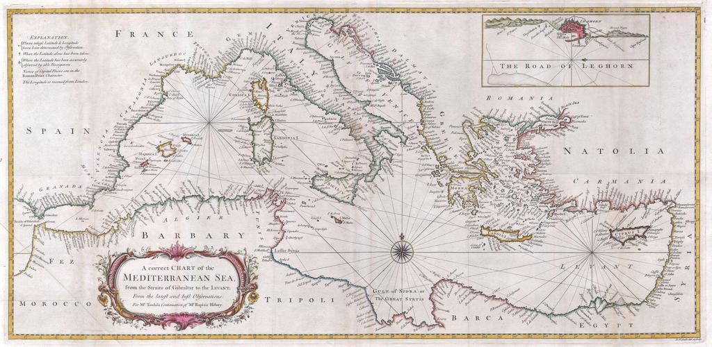 | Keywords: 1745 Seale Map or Chart of the Mediterranean Sea - Geographicus - Mediterranean-seale-1845.jpg A large and attractive hand colored 1745 sea chart of the entire Mediterranean region Drawn in considerable detail with most ports clearly labeled Large title cartouche in the lower left quadrant Rumb lines throughout with a decorative compass rose at center An inset depicts The Road to Leghorn or Livorno harbor 1745 Size in 28 5 14 object history credit line accession number Mediterranean-seale-1845 Geographicus-source PD-Art-100 Old maps of Mediterranean Sea 1745 maps Old maps of Europe Old maps of seas Maps in English |