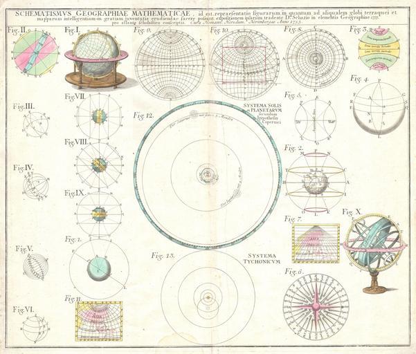 Keywords: 1753 Homann Heirs Solar System Astronomical Chart - Geographicus - Schematismus-homannheirs-1753.jpg This is a rare 1753 Homan Heirs chart of the Solar System Features 23 diagrams including spheres earth and celestial globes planetary systems temperature zones and projection systems following the style of Schatz There is a general emphasis on the astronomical work of Copernicus and Tycho Brahe This map was drawn by Tob Mayer for inclusion the 1752 Homann Heirs Maior Atlas Scholasticus ex Triginta Sex Generalibus et Specialibus ¦ Most early Homann atlases were made to order or compiled of individual maps at the request of the buyer However this rare atlas composed of 37 maps and charts was issued as a suggested collection of essential Homann Heirs maps A fine copy of an important map 1753 Size in 21 5 18 object history credit line accession number Schematismus-homannheirs-1753 Geographicus-source PD-old-100 1753 paintings Old astronomical prints Compass roses on maps Heliocentric model Armillary spheres Astronomical diagrams Astronomy sketches Celestial globes Images of map projections |