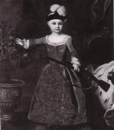 | Keywords: 1754 Georg.JPG Georg Karl von Hessen-Darmstadt de 1754 “1830 c 1754 Oil on canvas Institution Schlossmuseum Darmstadt accession number object history credit line http //www royaltyguide nl/images-families/hessen/hessendarmstadt2/1754 20Georg JPG first uploaded to de wikipedia by de User Thyra <gallery>Schlossmuseum DA 03 jpg</gallery> PD-old-100 DEFAULTSORT 1754c; Georg Karl von Hessen-Darmstadt Johann Christian Fiedler Schlossmuseum Darmstadt Georg Karl von Hessen-Darmstadt 1754 oil on canvas paintings Portrait 1754 portrait paintings from Germany Male 18th-century oil portraits of boys at full length 18th-century portrait paintings in Germany Black and white reproductions of portrait paintings in color Children with fur in art Columns in portrait paintings Drapery in portrait paintings Ermine clothing in art Painting frames Paintings by Johann Christian Fiedler with fur Paintings of boys' dresses Portrait paintings of standing boys Portraits with firearms |