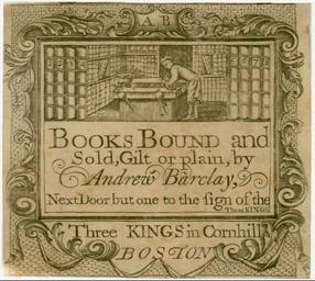 | Keywords: 1764 AndrewBarclay Boston.png Trade card Books bound and sold gilt or plain by Andrew Barclay next door but one to the sign of the Three Kings in Cornhill Boston American Broadsides and Ephemera Series 1 1764 Barclay Cornhill Boston Massachusetts pre-1829 Boston in the 1760s PD-old-100 |